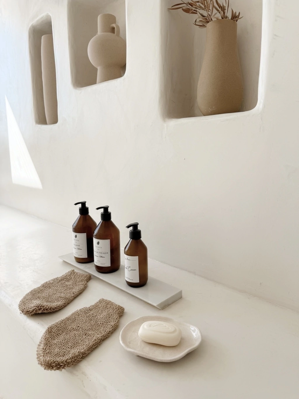 Hecha a mano, con un diseño fluido y curvo que invita al tacto y a la calma. Su tono natural y su forma libre evocan paisajes mediterráneos, donde lo simple y lo imperfecto tienen su lugar.